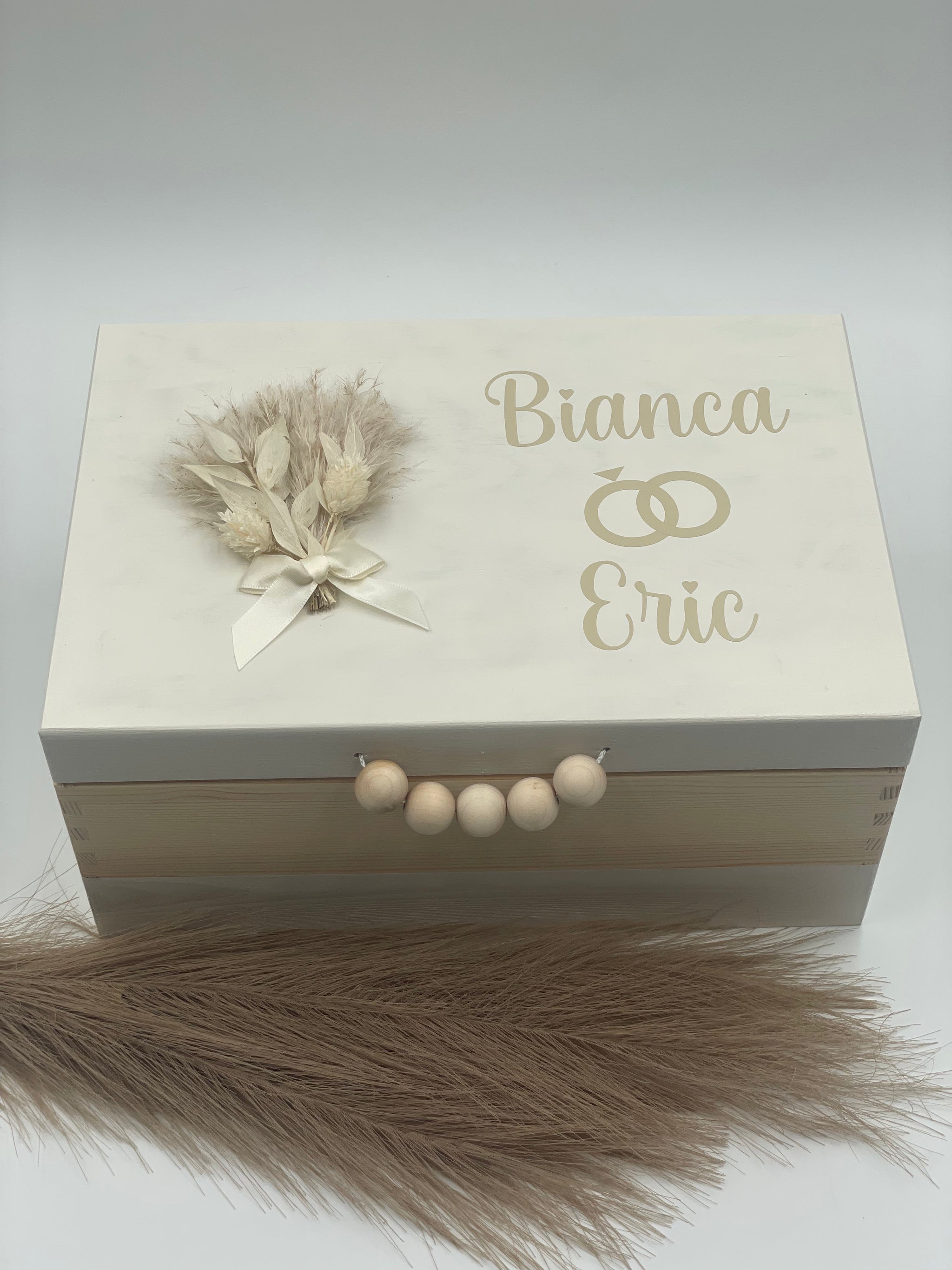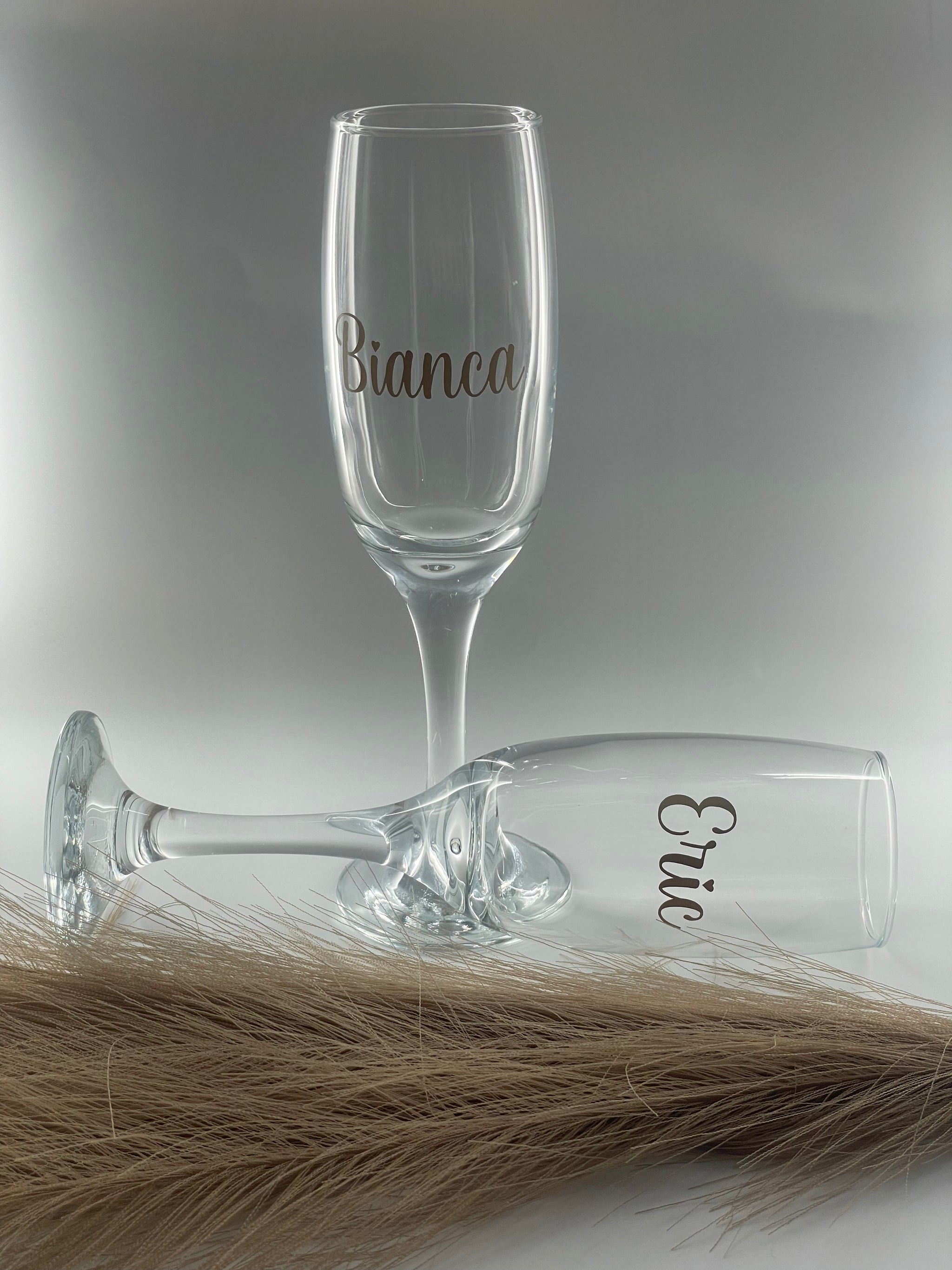 Unser Hochzeitsset "Bianca" besteht aus einer personalisierten Erinnerungskiste, zwei Sektgläsern und einem Caketopper .